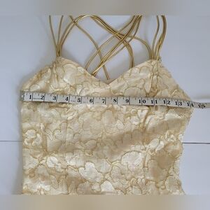 Vintage Champagne lace and beaded sweetheart neckline gold cross back midi dress