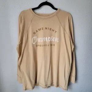 NWT Aerie Game Night Champion Long Sleeve Graphic Tee, Medium, Mustard Yellow