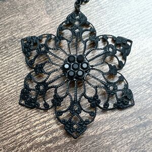 This black lace pendant necklace adds a touch of sophistication to any outfit. Perfect for evening wear or special occasions.