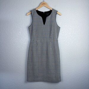 Ann Taylor Plaid Knit Sheath Dress 4 - Split Neck, Sleeveless, Office Siren