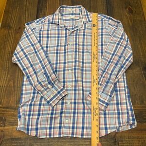 Peter Millar Mens Large Button Down Shirt Blue Plaid 100% Cotton Casual business