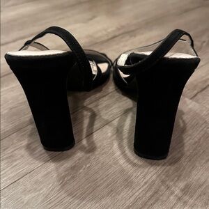 Chic black heels with elegant straps. Perfect for elevating any outfit.