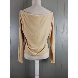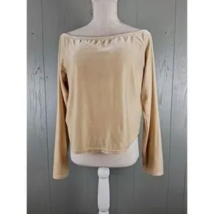 Soft Surroundings Sweater Womens Large Beige Velvet Off Shoulder Long Sleeve Top