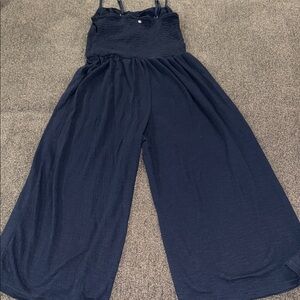 Step out in style with this comfy navy jumpsuit. Elastic back and cut out front! Fabric is so soft! F-90