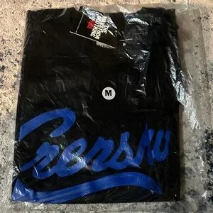 Stylish short sleeve tee. Bold black with blue accents. Perfect for casual wear.