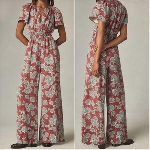 Anthropologie XS Somerset Floral Multicolor Wide-Leg Short Sleeve Jumpsuit