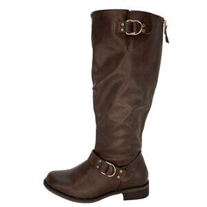 XOXO Minkler Brown Faux Leather Knee High Wide Calf Womens Boots Size 5.5W