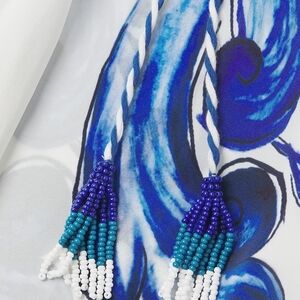 Stylish garment with bold blue and white pattern. Ideal for a fashionable statement.