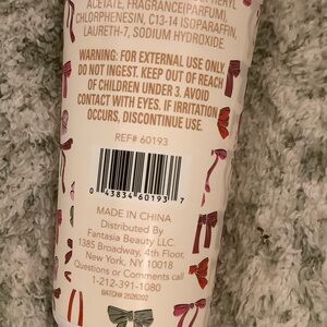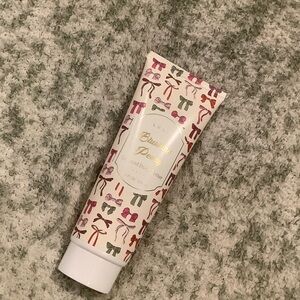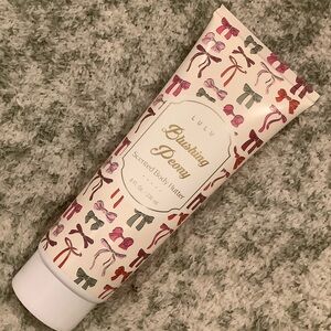 Lulu Blushing Peony Scented Luxury Body Butter in Adorable pink, green and red bow designs. NWT holds 8 oz., of skin nourishing body butter, beautifully packaged by Fantasia Beauty LLC. Manufacturer safety sealed. Measures 3” x 7.75”.