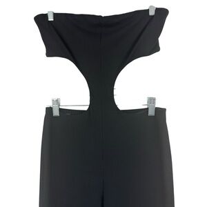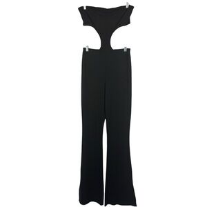 SUPERDOWN Darcey Cut Out Jumpsuit Ribbed Black Strapless Flare Event Medium M