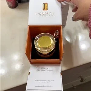La Rouge hydrating Vitamin C cream and brightening mask set. Features the Topaz Collection. Elegant white and gold packaging.