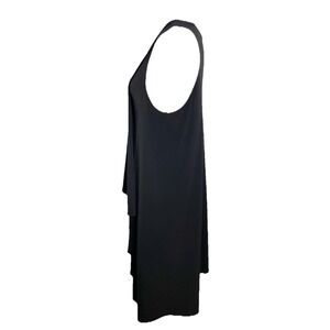 Meg Shop Black Stretch Jersey Knit V Neck Dress Lagenlook Travel Comfort Large