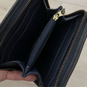 Vintage Navy Blue Coach Black Zip-Around Compact Clutch Style 6901 l