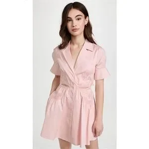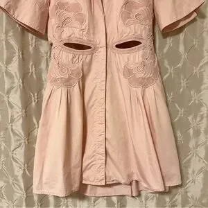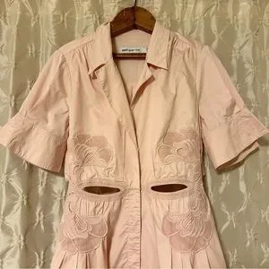 Self Portrait Dusty Pink Cutout Mini Lace Applique Trim Collared Mini Dress