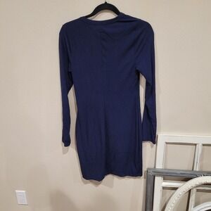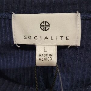 Socialite womens size lg. Blue ribbed body con dress with long sleeves and front asymetrical cutout at neckline. NWT excellent condition without flaws. Please see photos for detail, condition, and measurements. Always happy to bundle and take offers. Thanks for looking.