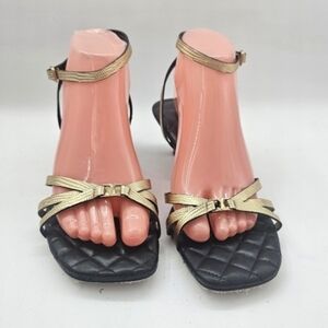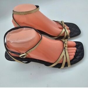 L'AGENCE Genette Ankle Strap Kitten Heel Sandal Gold Metallic Size 9 MSRP $345