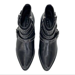 Aqua Blane Black Leather Womens Ankle Boots Size 7.5M