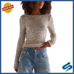 Brand new, never worn, and in flawless condition — this sparkling sequin crop top delivers a bold, eye-catching look perfect for nights out, music festivals, or dancing the night away. The fit is slim and flattering, with a unique back detail that adds a chic touch.