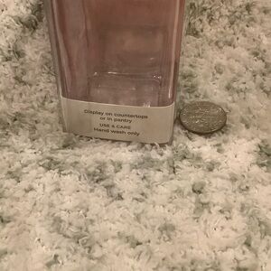 Charming Willow & Reed Soft pink glass Heart Valentines salt and pepper shaker boxed set NWT, holds 2.8 oz. Features a pretty blush pink heart design on darker pink translucent glass shakers with silver toned metal toppers. Adorable Valentine’s Day practical decor accent for your kitchen or dining table. Sweet! Hand wash recommended for long life of item. Measures 3.25” x 4” x 1.50”.