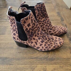 A New Day Ellie Cheetah Chelsea Boots Brown Black Block Heel Women's 7 NWT