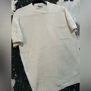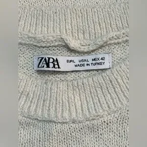 Zara men’s soft knit crewneck style shirt, color is off white with front left pocket.