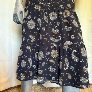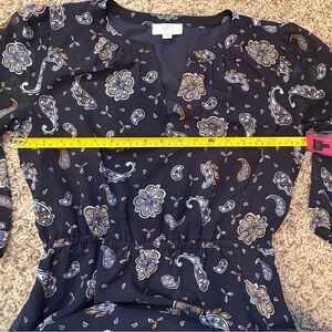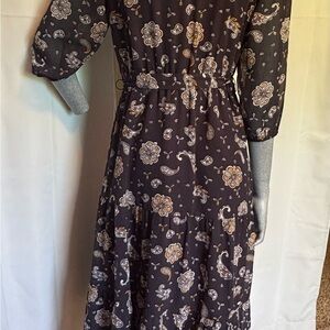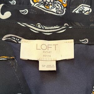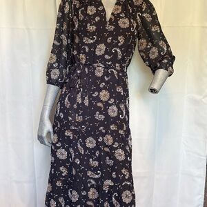 LOFT Paisley Midi Dress Flowy Bishop Sheer Sleeves V-neck Floral Fall Peasant SP