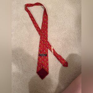 SALVATORE FERRAGAMO 100% Silk Red Horse/Flower Patterned Men’s Neck Tie