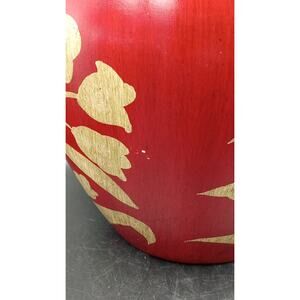 Beautiful Lg Red Vase With Cream Leaves and Flowers 10"