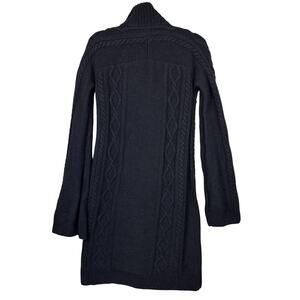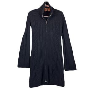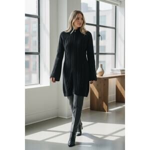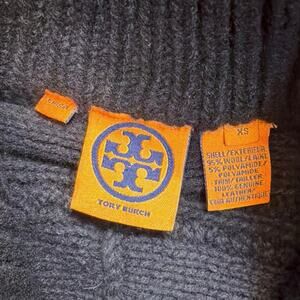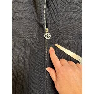 Tory Burch Dress Womens XS Black Pure Merino Wool Bell Cable Zip Cardigan Goth