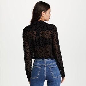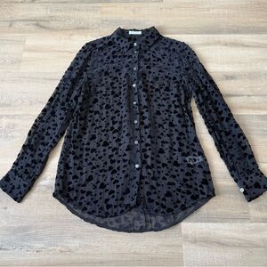 Equipment Femme Black Silk Blend Velvet Heart Sheer Button Up Shirt - Small