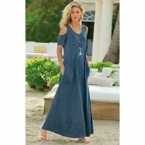 ✨Soft Surroundings Electra Cold Shoulder Blue Maxi Sz Large Dress✨