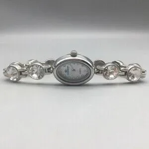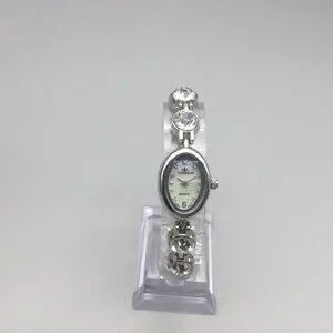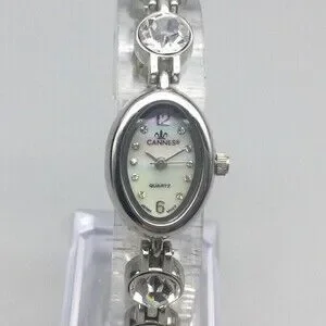 Cannes Womens Watch 17mm White MOP Silver Tone Crystal Bracelet New Battery 7"