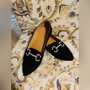 Chic black flats with stylish silver accents. Ideal for versatile wear.