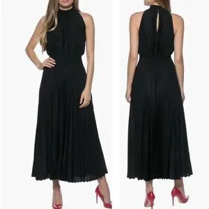 Marina Pleated Midi Dress Black Size 4