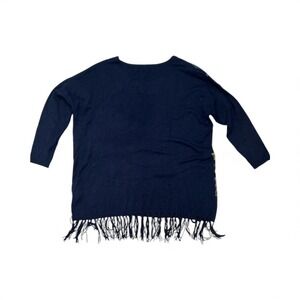 Disigual | Artsy Chic Floral Sequin Tassel Trim Top Navy Blue Size Small (Flaw)