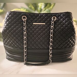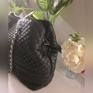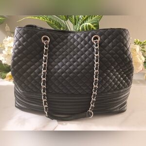 Chic black quilted design with chain straps. Stylish and versatile for any outfit.