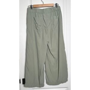 Keywords: Thread Supply, cropped pants, wide leg, drawstring waist, relaxed fit, linen look, casual wear, summer pants, boho, travel pants, utility pockets, sage green