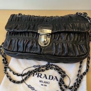 one interior zippered pocket and one slip pocket. One outside snap pocket.