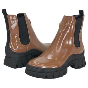 GUESS Hestia Cognac Patent Leather Womens Ankle Boots 5M
