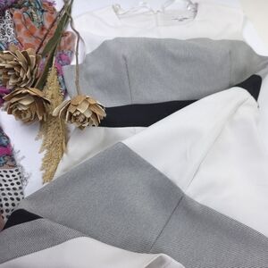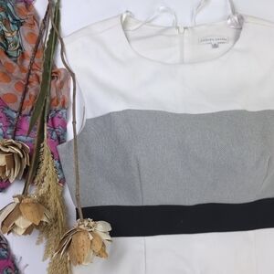 Sandra Darren Elegant Off White and Gray Striped Dress Sz 10