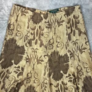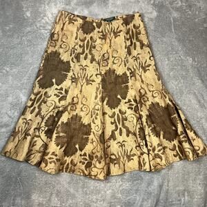 Ralph Lauren Midi Skirt Womens 8P 100% Linen Brown Floral Peasant Boho