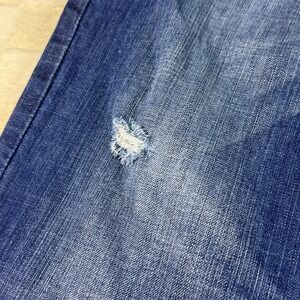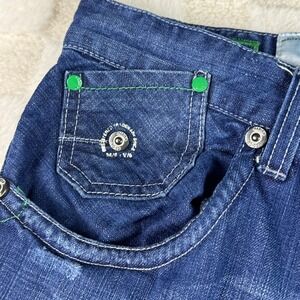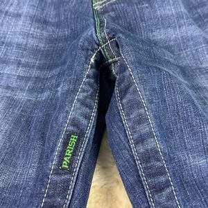Parish Mens Jeans Distressed Blue Denim Green Accent Stitching Stylish