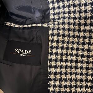 Spada houndstooth blazer in linen and cotton blend. Navy and White