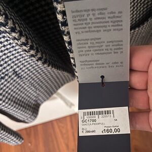 Elevate your style with this classic Italian navy and white houndstooth blazer. Perfect for any formal occasion, this blazer offers a timeless look.
