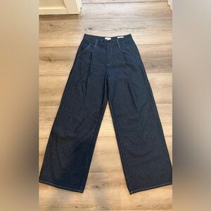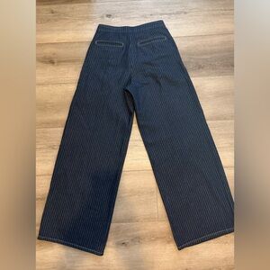 Chic high-rise pants with blue pinstripes. Ideal for a modern look.