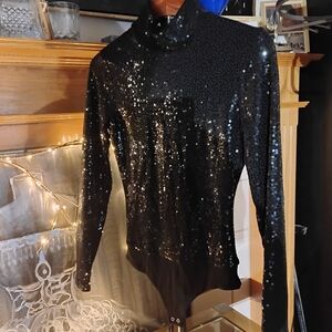 Chic black bodysuit with dazzling sequins. Perfect for a night out. excellent condition no call outs