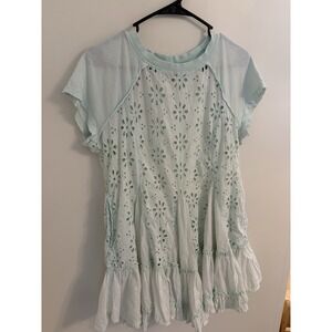 Free People Women's Sadler Mini Dress Eyelet Fabric Ruffle Hem Boho Size Medium