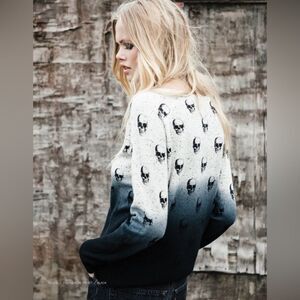 Skull Cashmere Dip Dye Ombre Skull Print Sweater Size XS