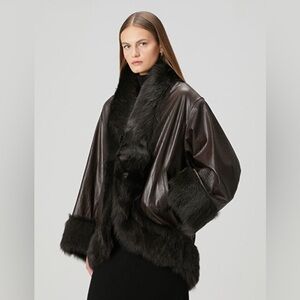 NEW Nour Hammour Sabine Leather Coat Jacket Fur Brown Coco Sz M SOLD OUT