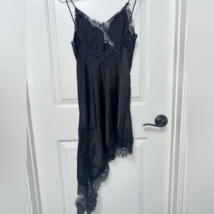 like new Zara slip dress size S asymmetrical Chic black chemise with delicate lace trim. Perfect for elegant evenings. Soft and stylish.